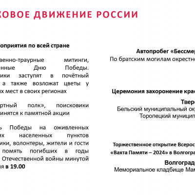 МЕРОПРИЯТИЯ в субъектах Российской Федерации, приуроченные ко Дню Победы
